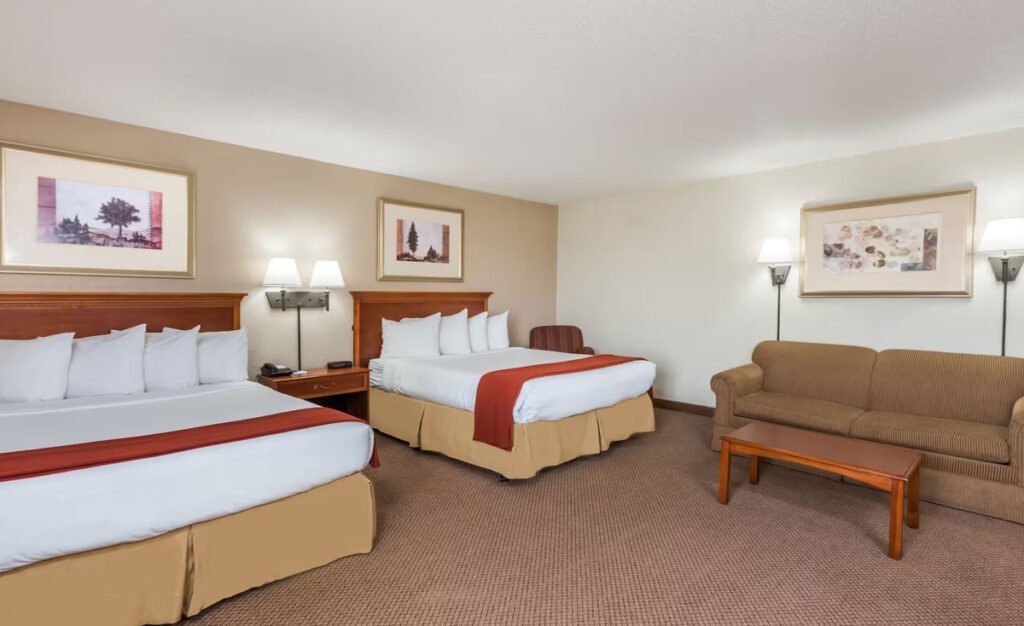 This suite has air conditioning and features two queen beds and sofa bed.